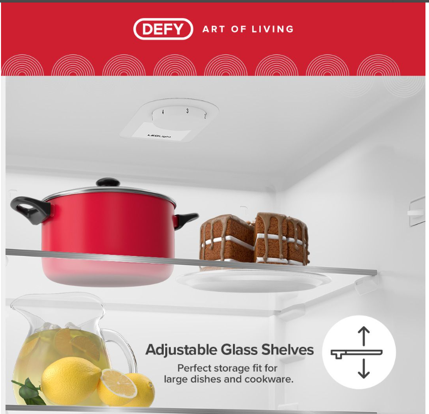 Defy's DAC645 shatters the ordinary with a bold 348-liter capacity that refuses to compromise. Three intelligently designed shelves maximize your storage without sacrificing style—this isn't just a freezer fridge, it's a statement. The integrated water dispenser delivers convenience at your fingertips, while the bottom-mount freezer keeps your most-used items within easy reach. Efficiency meets audacious design in a refrigerator that demands attention and delivers performance.